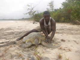 The Republic of the Congo is home to five of the seven species of sea turtle: green, olive ridley, leatherback, hawksbill and loggerhead, all classified as endangered on the IUCN Red List. They face various natural and anthropogenic threats, including by-catch (accidental capture in traditional fishing nets). During the 2018-2019 egg-laying season, Renatura Congo found evidence of many cases of by-catch in the Conkouati-Douli National Park, mainly at Kondi.